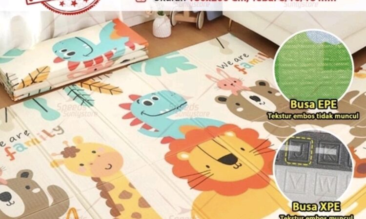 - Foam XPE (Cross-linked Polyethylene): Jenis busa polyethylene bermutu tinggi yang melalui proses cross-linking. Bahan ini dikenal aman, bebas racun (non-toxic), lembut, empuk, memiliki insulasi termal yang baik, dan tahan terhadap kelembapan, membuatnya sangat ideal untuk produk bayi dan anak-anak.