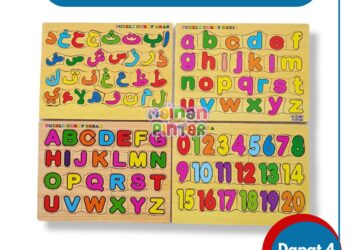 Mainan Edukasi Anak Paket Puzzle Kayu Isi 4 Pcs: Huruf Hijaiyah, Huruf Besar, Huruf Kecil, dan Angka 0-20