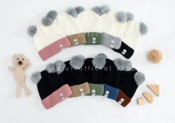 Topi Rajut Anak Pompom Kupluk Bayi Kombinasi 2 Warna