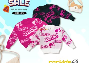 Sweater Rajut Motif Barbie | Outerwear Anak Perempuan Korea Fashion Kids