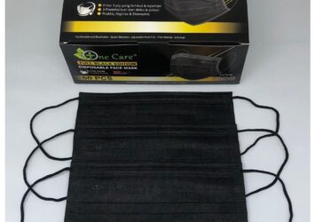 Earloop Full Black 3ply Onecare – Masker Bedah Premium Berkualitas Tinggi