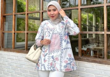 Batik Atasan Lengan Panjang Batik Wanita Modern Puffy Janggan Resleting Belakang