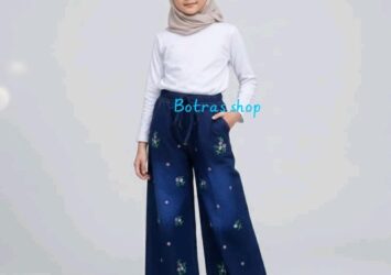 Kulot Jeans Bordir Motif Bunga untuk Anak Usia 2-16 Tahun