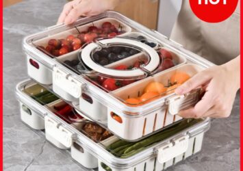 Kontainer Kulkas Penyimpanan Makanan dengan Saringan & Tutup Transparan Kedap Udara