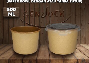Paper Bowl Kraft Coklat 500ml Laminasi + Tutup oleh Sendoek