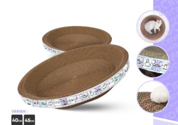 Pawsitive Vibes Papan Garukan Kucing Model Bulat 2 In 1: Tempat Istirahat & Tidur yang Nyaman