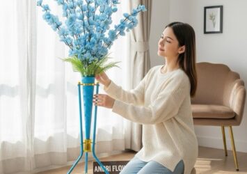 Bunga Sudut Sakura Mihua 21 Kuntum Bunga Satuset dengan Vas Standing Besi