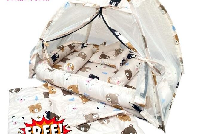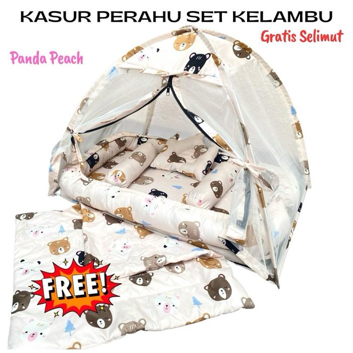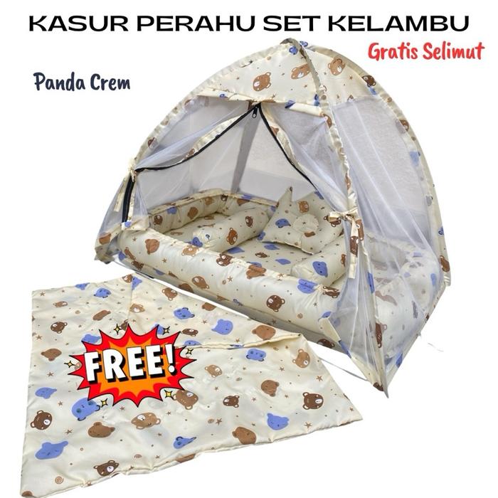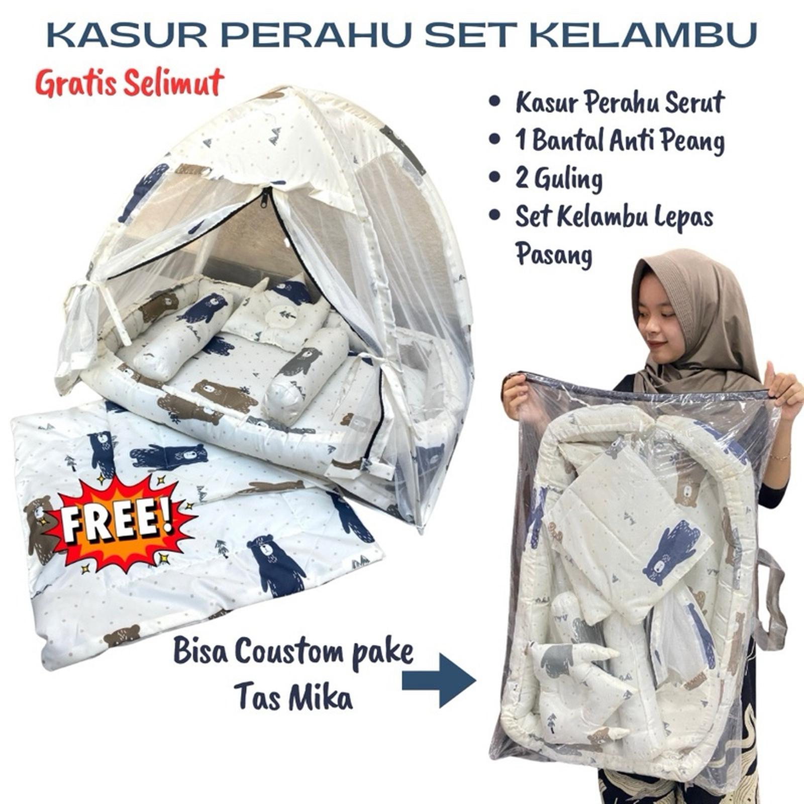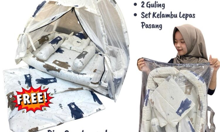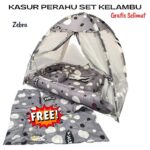 | Paket 1 (Ukuran 7-8 oz) | 1 Kasur (85x60cm), 1 Kelambu, 1 Bantal Anti Peyang Model Crown | FREE Badcover Bayi |