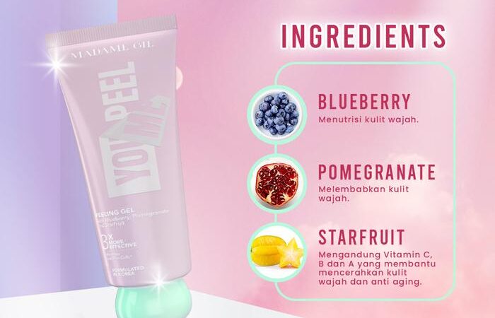 Fungsi UtamaPeeling gel untuk membersihkan pori-pori, mengangkat sel kulit mati, mencerahkan, dan melembapkan kulit.