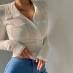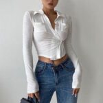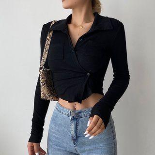 【Premium】Women’s Casual Short Tops Long Sleeve Button Front 7311 (S/M/L)