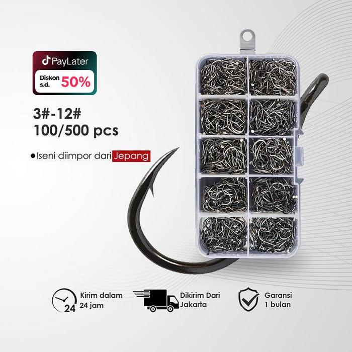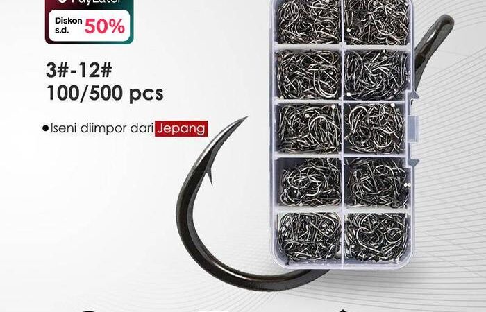 Tersedia dalam dua pilihan paket (100 atau 500 buah), kait ikan ini terbuat dari baja karbon tinggi dengan ketajaman maksimal untuk hasil tangkapan optimal. Cocok untuk memancing di laut (air asin) maupun sawah/air tawar, termasuk target ikan belut.