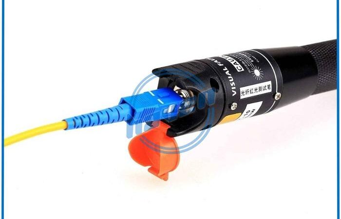 - Visual Fault Locator (VFL): Sebuah alat yang memancarkan sinar laser merah terang ke dalam inti serat optik untuk membantu mengidentifikasi lokasi kerusakan (seperti putus atau tekukan) secara visual.