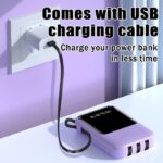 - Multifungsi – Dilengkapi kabel bawaan (Type-C, Lightning, Micro-USB, USB) dan senter darurat.