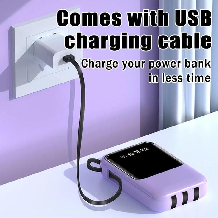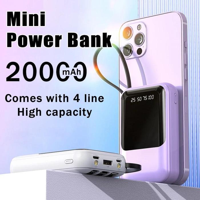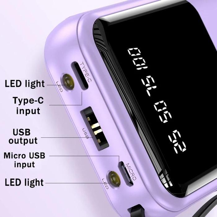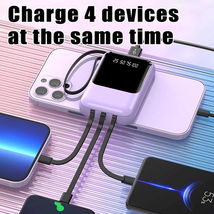 | Fitur Khusus | Built-in 4 kabel (Type-C, iPhone, Android, USB), LED display kapasitas, senter, tali portabel |