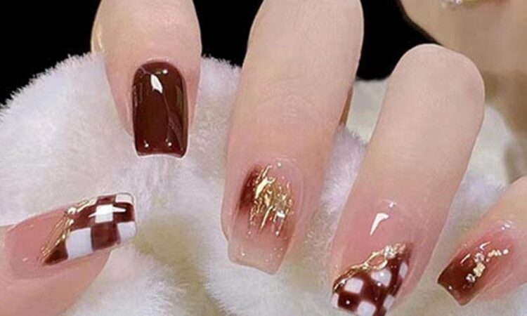 - Oleskan lem tipis pada kuku palsu dan tempelkan (hindari lem berlebih).