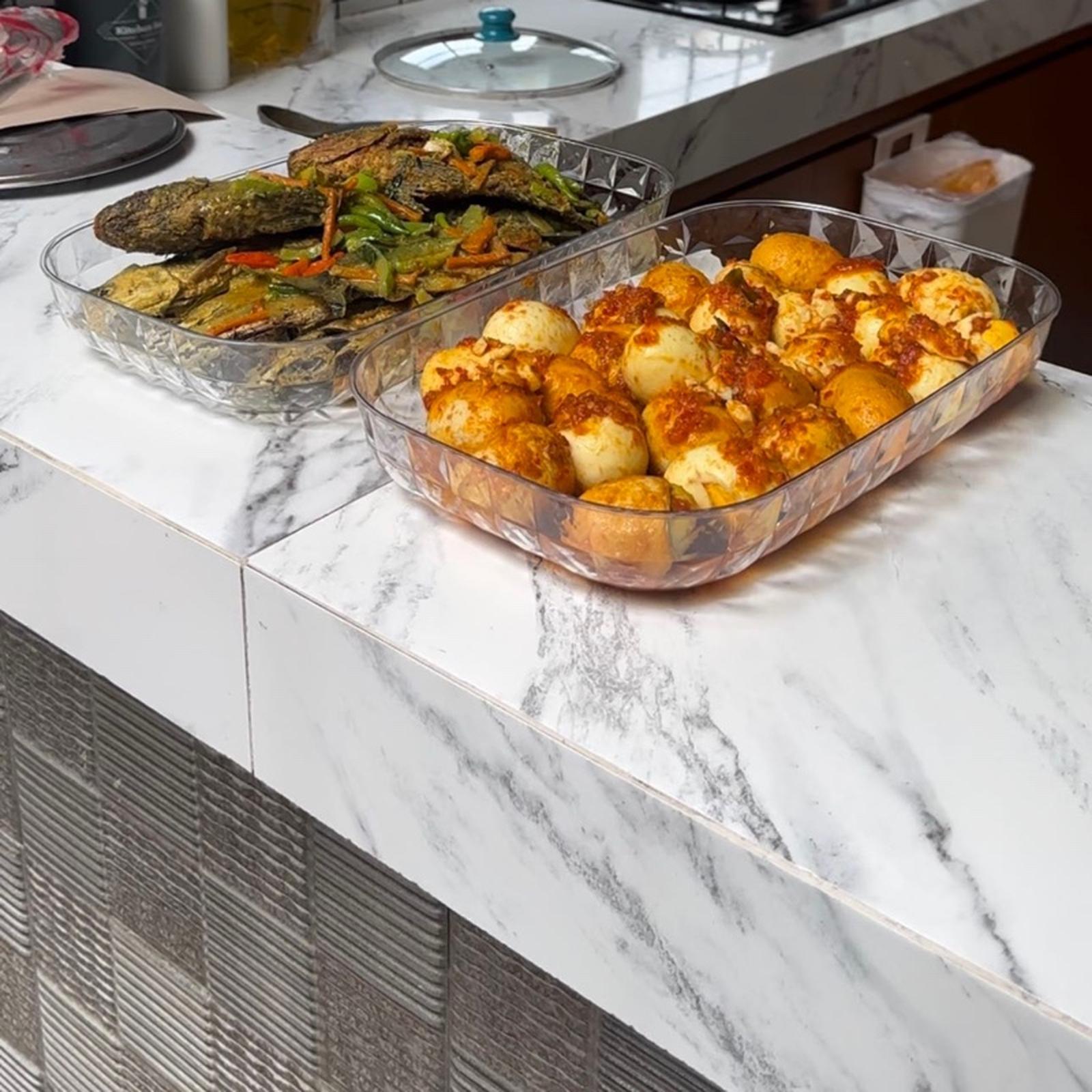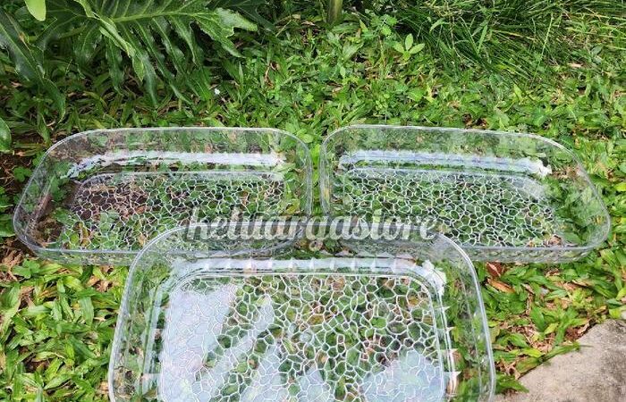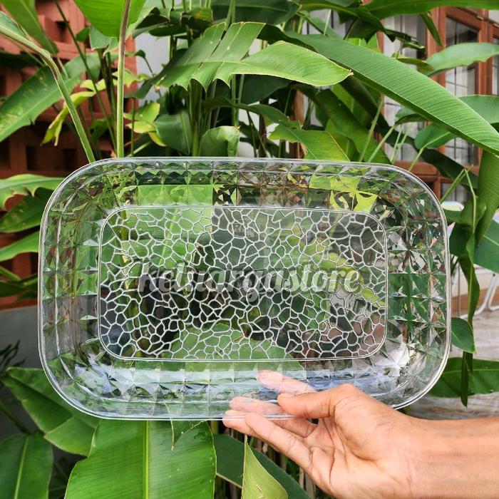 Dapatkan paket lengkap tiga nampan prasmanan berbahan akrilik kristal berkualitas tinggi. Dengan ukuran yang luas (22x35x5 cm), nampan ini memberikan ruang yang cukup untuk menyajikan hidangan dalam porsi besar. Material akrilik tebal menjadikannya sangat kokoh, anti pecah, dan tampak mewah seperti kristal.