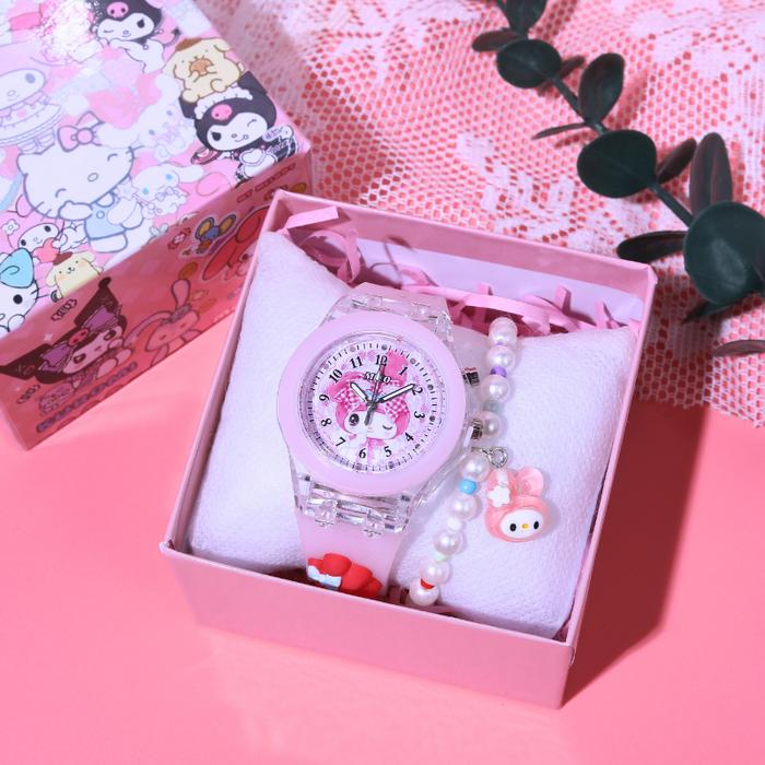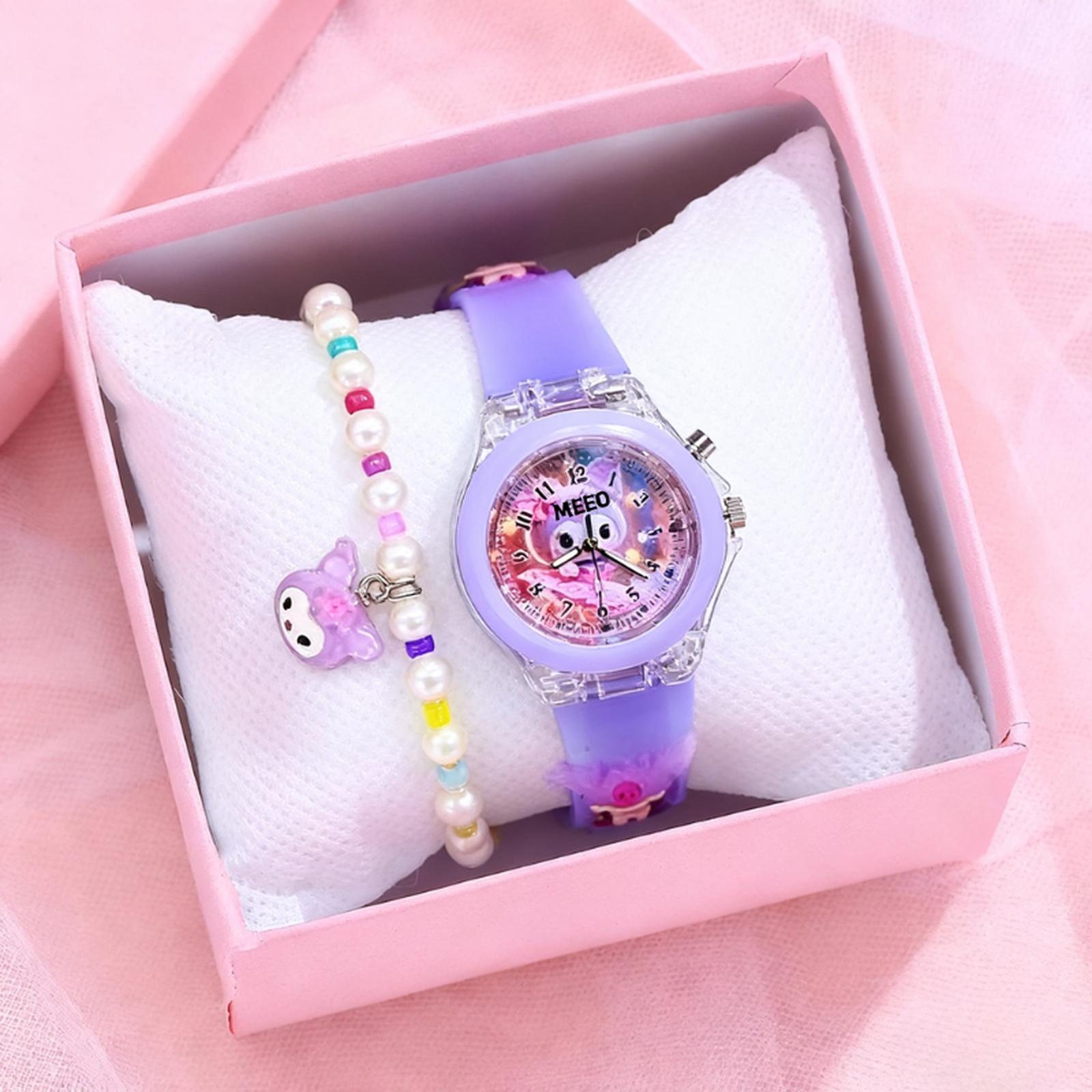 Hadiah spesial yang sempurna untuk putri tercinta! Jam tangan fashionable ini hadir dalam set lengkap berisi 1 jam tangan, 2 gelang cantik, dan kotak hadiah yang menarik. Desainnya yang lucu dengan motif kartun dan lampu LED akan disukai oleh anak-anak.