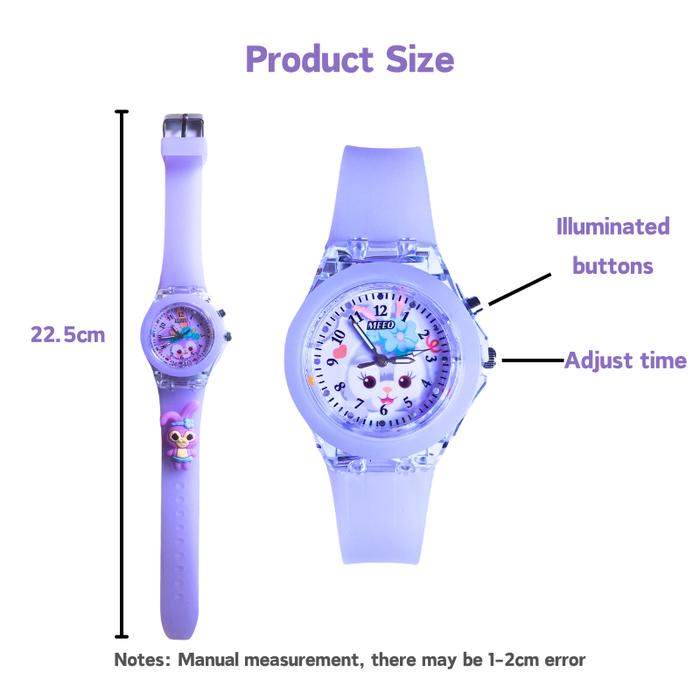 Dengan dial berdiameter 36mm yang mudah dibaca, jam ini dilengkapi fitur lampu LED yang menyala, memudahkan si kecil melihat waktu bahkan di tempat gelap. Tali jam yang terbuat dari silikon lembut sangat nyaman dipakai dan dapat disesuaikan panjangnya.