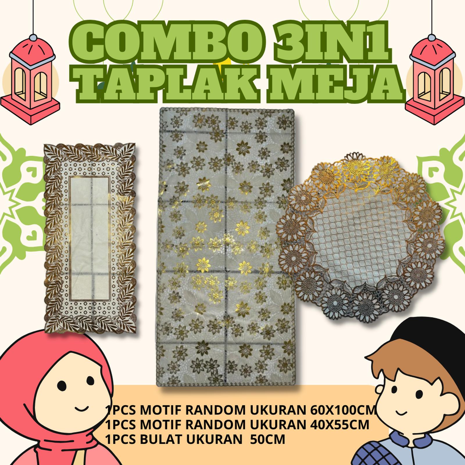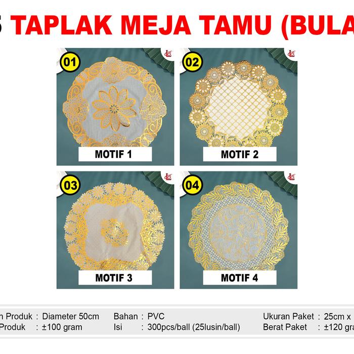 | Jumlah dalam Kemasan | 3 pcs taplak meja dengan motif gold random |