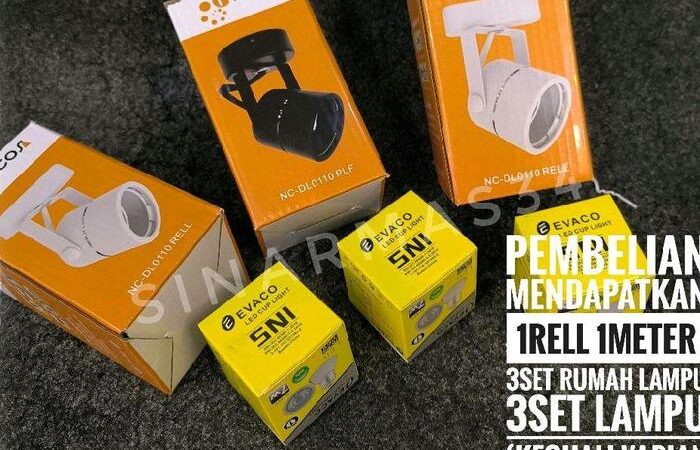 | Apa yang Anda Dapatkan? | 1 pc Rel PVC 1 Meter, 3 Housing Nicos, 3 Bohlam LED MR16 7W Evaco/Nicos. |