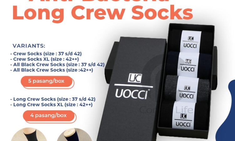 | Paket & Varian | – 5 Pasang Crew Socks (tinggi ±15-18 cm dari lantai) |