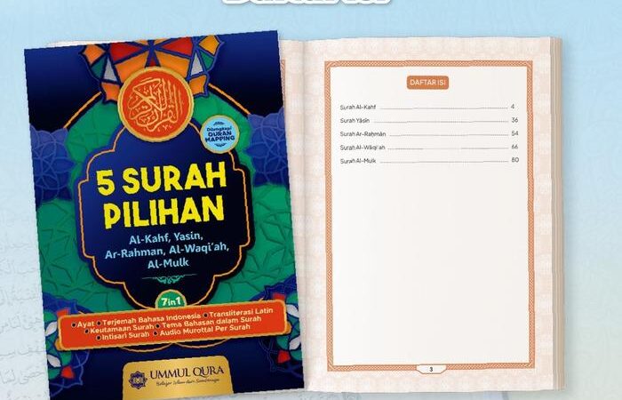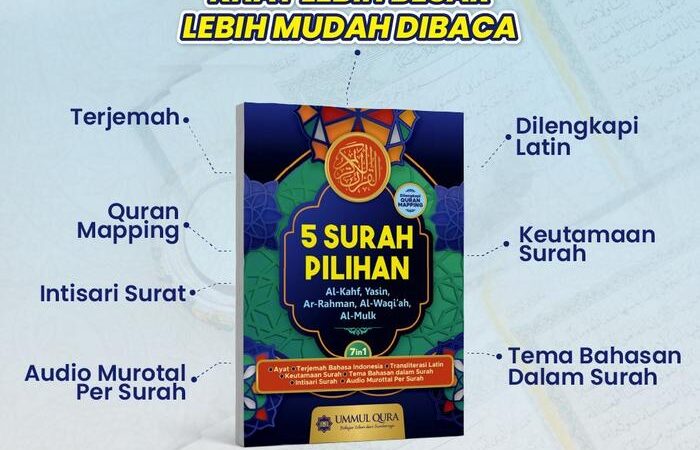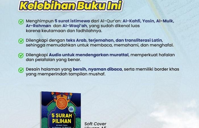 Buku ini menghimpun lima surat istimewa dalam Al-Quran yang sering dibaca oleh umat Islam di Indonesia. Setiap surat memiliki keutamaan dan fadilah (keistimewaan) yang luar biasa, menjadikannya pilihan utama untuk diamalkan sehari-hari.