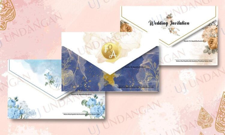 - Softcover Setengah Amplop: Desain undangan dimana bagian sampulnya hanya menutupi setengah dari badan undangan, sering diikat dengan pita atau sabuk.