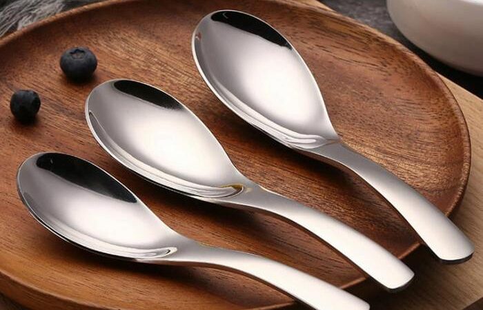 - Stainless steel: Logam paduan tahan karat yang sering digunakan untuk peralatan makan karena higienis dan awet.