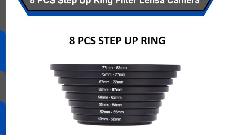 | Kompatibilitas Luas | Set mencakup 8 ring: 49-52mm, 52-55mm, 55-58mm, 58-62mm, 62-67mm, 67-72mm, 72-77mm, dan 77-82mm. |