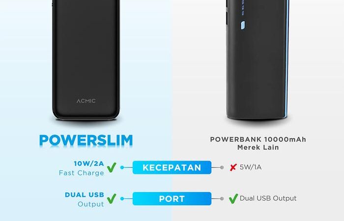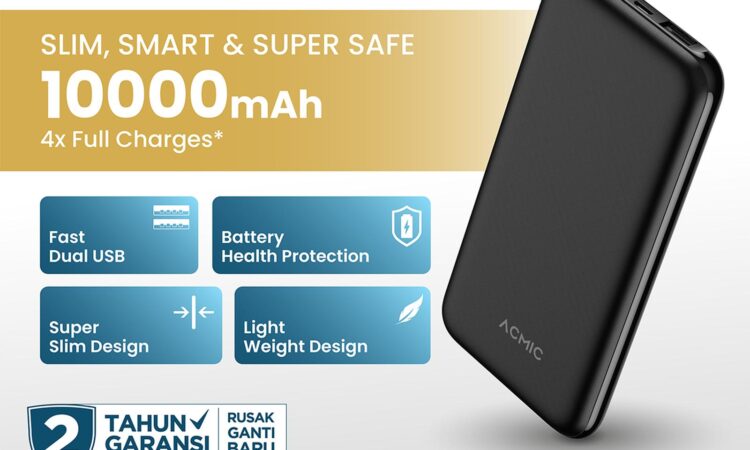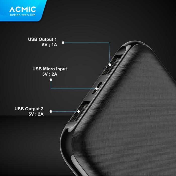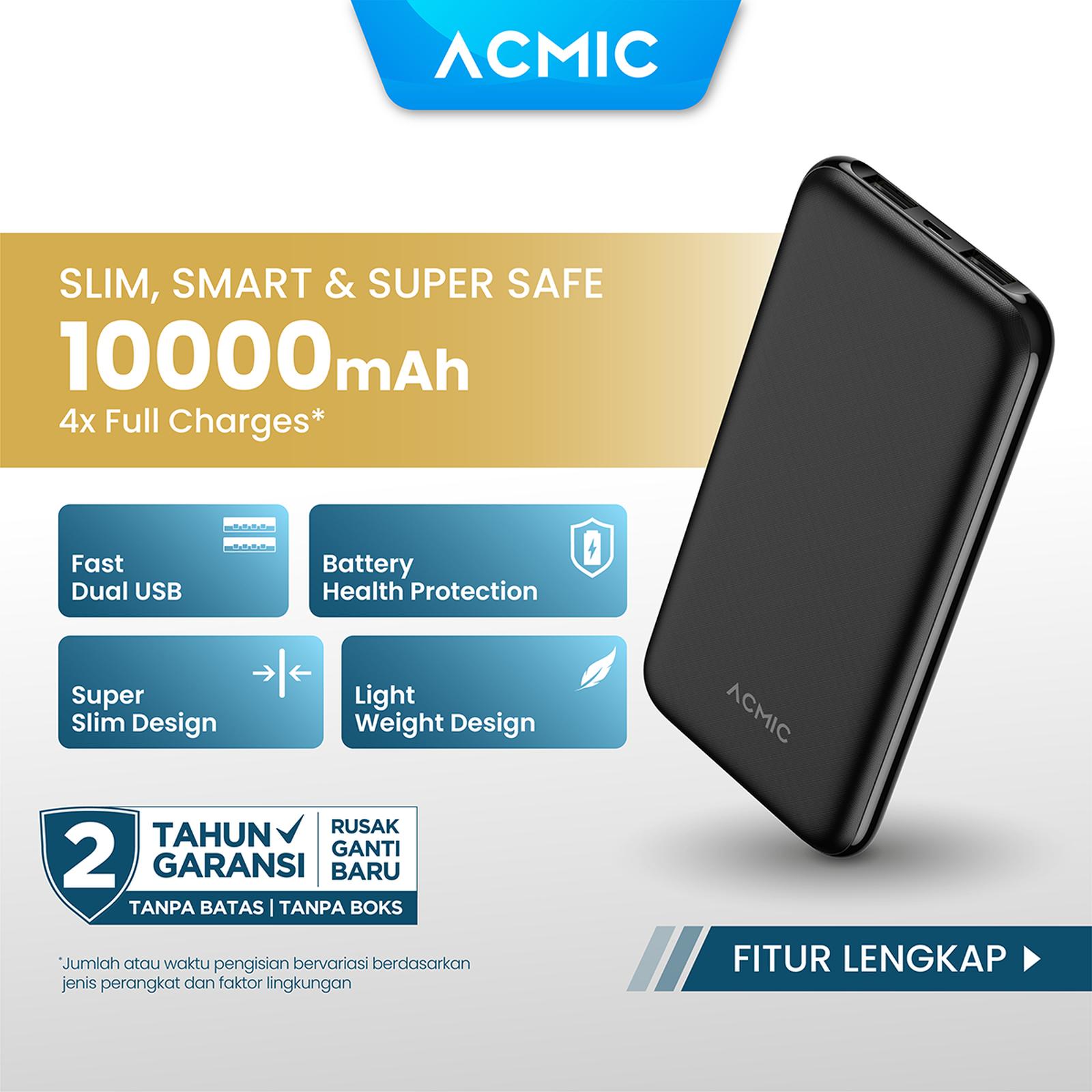 ACMIC Powerslim hadir sebagai solusi pengisian daya yang andal dan aman. Dengan kapasitas asli 10.000mAh, power bank ini mampu mengisi ulang ponsel Anda hingga beberapa kali. Fitur 2A Fast Charge memungkinkan pengisian daya hingga 2x lebih cepat dibandingkan power bank konvensional 1A, menghemat waktu menunggu Anda yang berharga.
