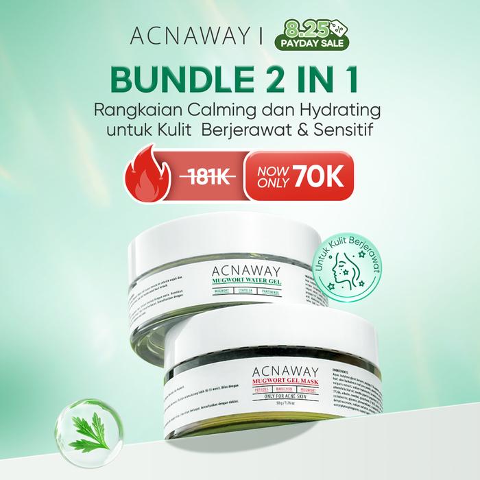 | ACNAWAY Mugwort Water Gel Moisturizer | Formula ringan seperti air dengan Mugwort, Centella, dan Panthenol. Tidak lengket, memberikan cooling sensation. Netto: 30gr, No BPOM: NA11230100244. | – Melembabkan kulit – Menutrisi kulit berjerawat |