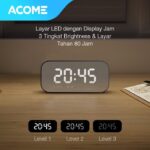| Desain & Display | Layar LED besar yang berfungsi ganda: menampilkan waktu dengan 3 tingkat kecerahan dan sebagai cermin rias ketika display dimatikan. Tampilan elegan dan multifungsi. |