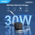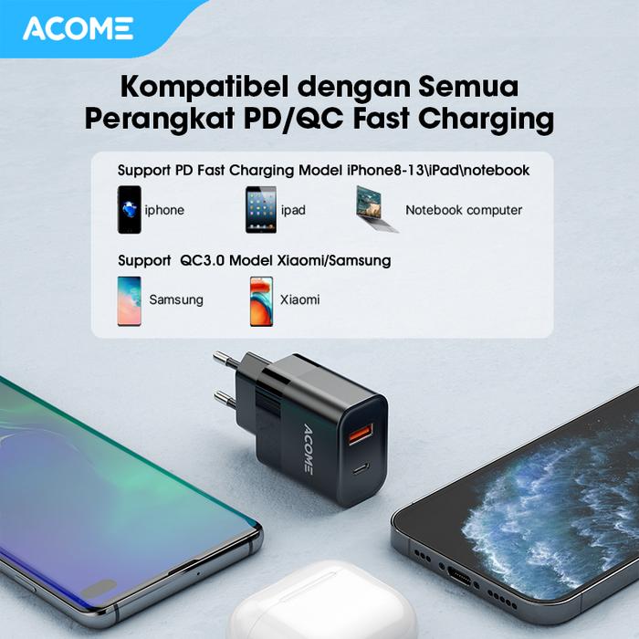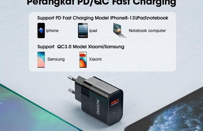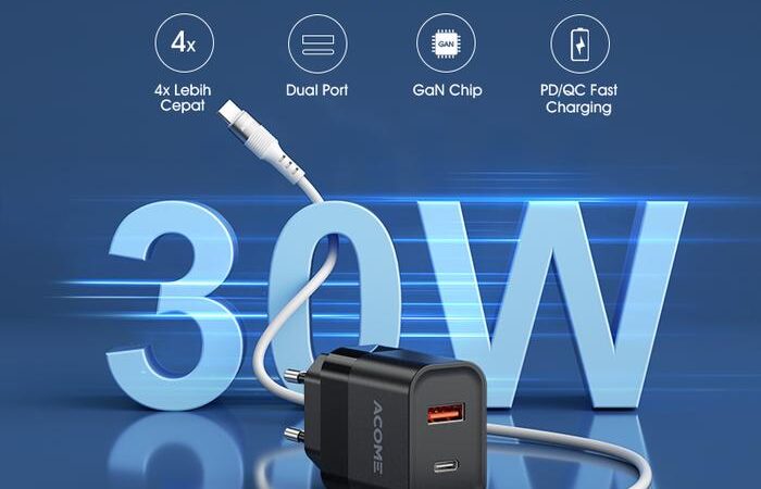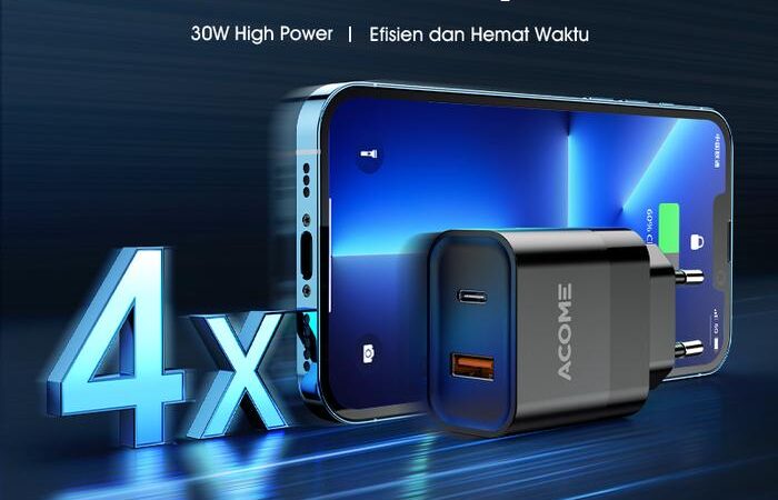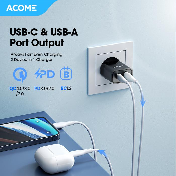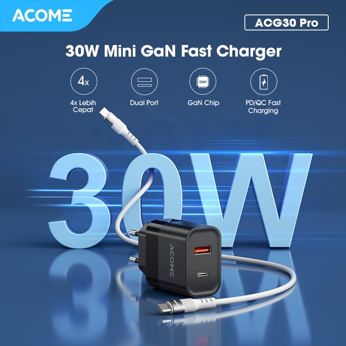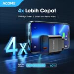 Tingkatkan pengalaman mengisi daya dengan ACOME Charger GaN 30W. Dengan teknologi GaN canggih dan dual port (USB-C & USB-A), charger ini memberikan kecepatan pengisian hingga 4x lebih cepat dari charger biasa. Isi daya iPhone 13 hingga 60% hanya dalam 30 menit, sempurna untuk aktivitas yang padat.