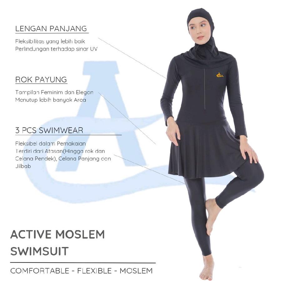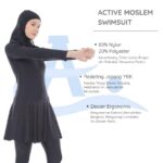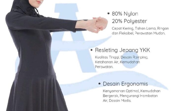 | Desain | Atasan lengan panjang, jilbab, dan celana panjang untuk penutupan maksimal. |