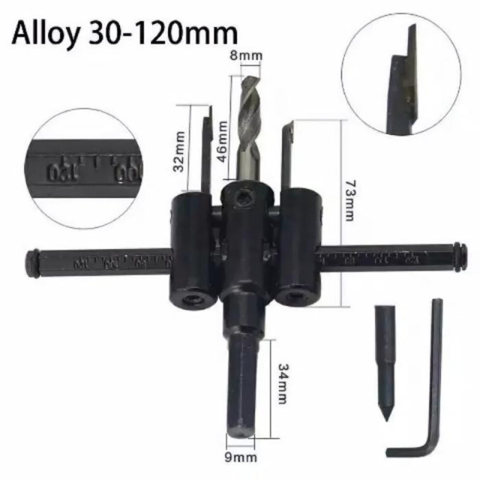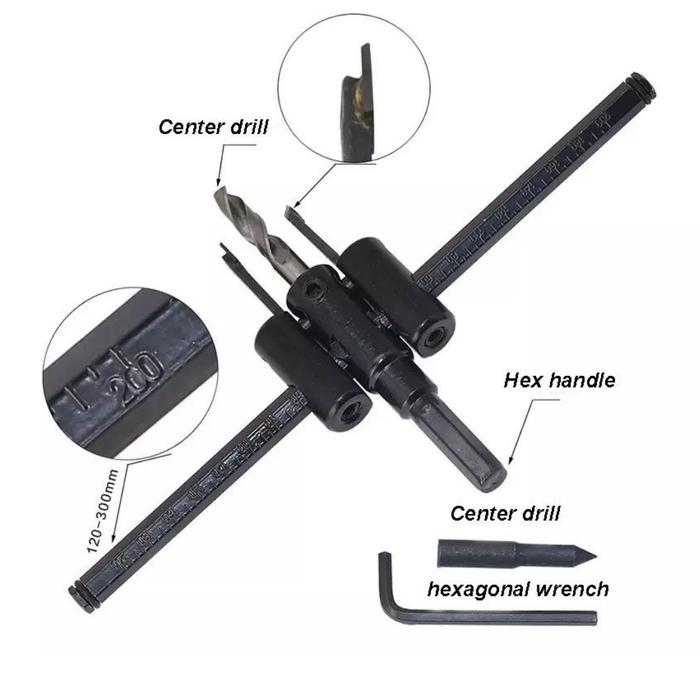 | Diameter Adjustable | Dapat disetel dengan mudah untuk membuat lubang dengan diameter antara 30mm hingga 300mm sesuai kebutuhan. |