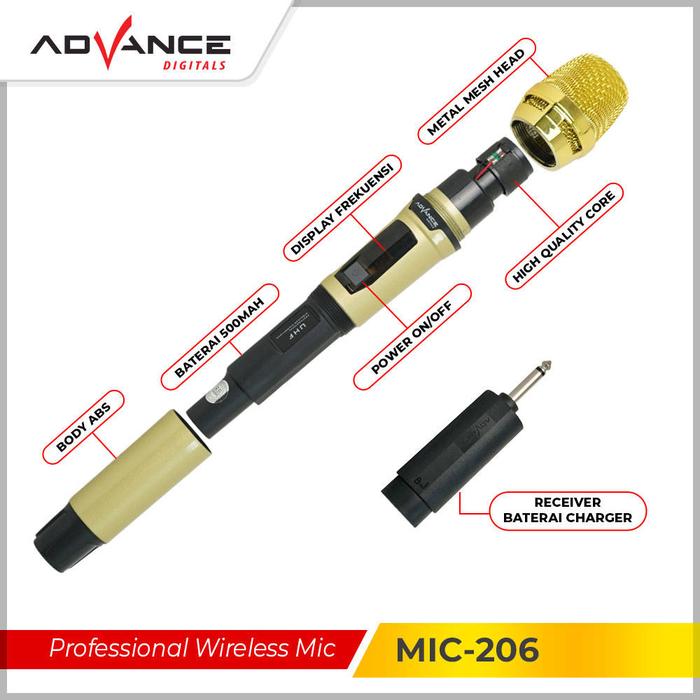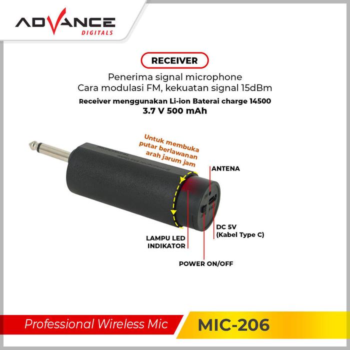 Tingkatkan setiap penampilan Anda dengan Advance Mic-206, mikrofon nirkabel profesional yang dirancang untuk memberikan kualitas suara jernih dan powerful. Cocok untuk penyanyi, presenter, pengajar, dan content creator, baik untuk penggunaan di dalam maupun luar ruangan.