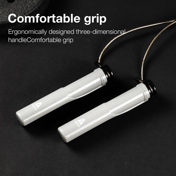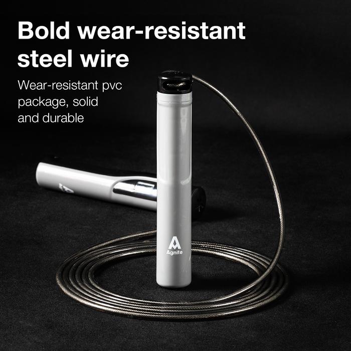 - Steel Wire: Kawat baja yang menjadi inti tali, memberikan daya tahan tinggi dan putaran yang konsisten serta cepat. Lapisan PVC di luarnya membuatnya nyaman digunakan dan tidak melukai kulit.
