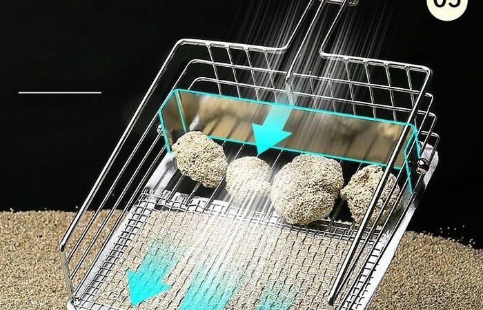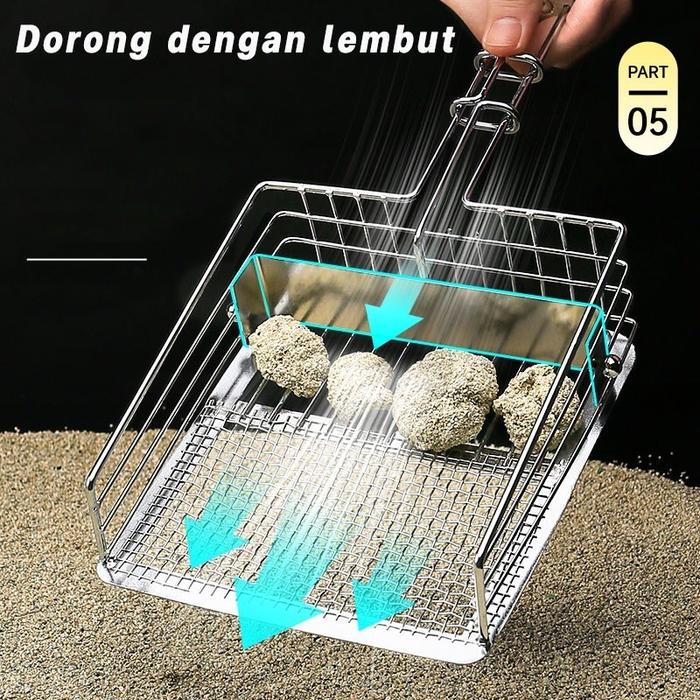 | Kegunaan | Membersihkan pasir kucing dengan cepat, memisahkan kotoran padat dari pasir bersih |