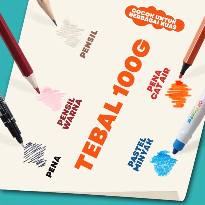 - 100 GSM: Gramatur kertas yang menunjukkan ketebalan (gram per square meter). Semakin tinggi angkanya, semakin tebal kertasnya.