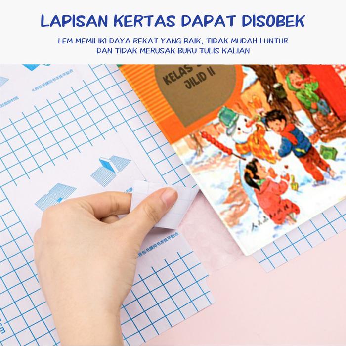 | Fitur Tambahan | – Desain transparan untuk memudahkan identifikasi buku. – Perekat mudah digunakan dan tidak merusak permukaan. |