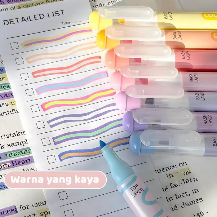 Tingkatkan produktivitas dan organisasi catatan Anda dengan Set Stabilo Pastel Aimilo. Set ini berisi 6 buah highlighter berkualitas tinggi dengan desain unik dua sisi, memberikan Anda pilihan 12 warna pastel yang menenangkan dan elegan. Warna-warna soft yang tidak mudah pudar sangat cocok untuk menandai informasi penting tanpa merusak kejelasan teks.