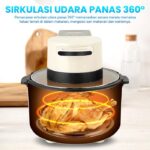 - Sirkulasi Panas 360°: Teknologi yang mendistribusikan udara panas secara menyeluruh di sekitar makanan, menghasilkan pemasakan yang merata dan renyah tanpa perlu dibolak-balik.