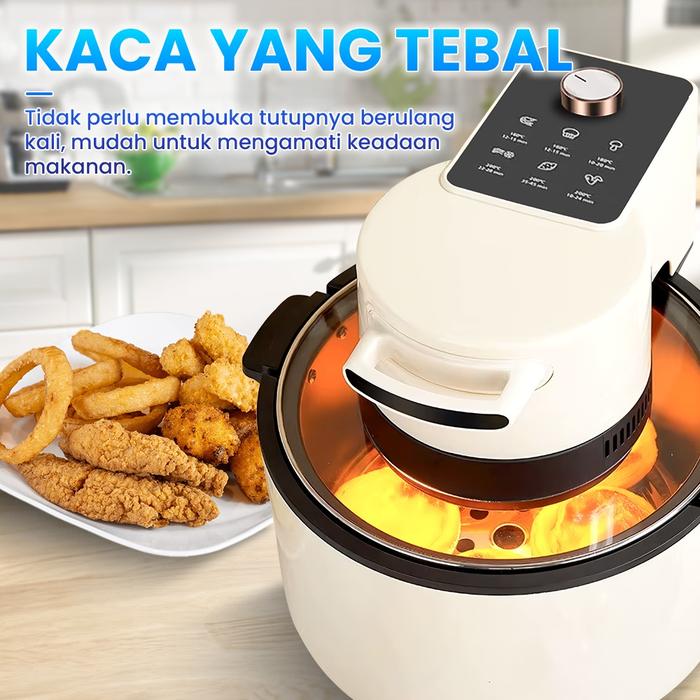 Nikmati semua makanan gorengan favorit keluarga dengan cara yang lebih sehat. Air Fryer ini menggunakan teknologi canggih sirkulasi panas 360° untuk memasak dan menggoreng secara merata hingga ke bagian dalam, tanpa memerlukan minyak atau kompor. Dengan tutup kaca transparan, Anda dapat memantau proses memasak tanpa harus terus membuka tutupnya, sehingga panas tidak terbuang dan hasilnya lebih maksimal.