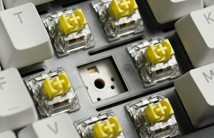 - Tactile (Yellow): Switch yang memberikan umpan balik taktil berupa tonjolan kecil saat ditekan, memberikan sensasi bahwa tombol telah teraktivasi tanpa suara klik yang keras, cocok untuk mengetik.