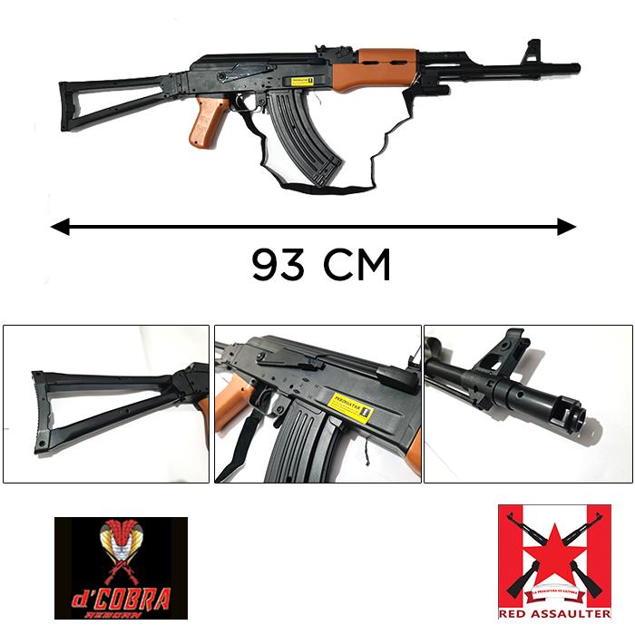 Mainan tembak AK-74 ini dirancang dengan detail tinggi dan menggunakan peluru plastik berbentuk bulat. Dilengkapi dengan sistem kokang manual di samping bodi, cara memainkannya sangat mudah: masukkan peluru ke dalam magazen, tarik batang kokang ke belakang, lalu tekan pelatuk untuk menembak.
