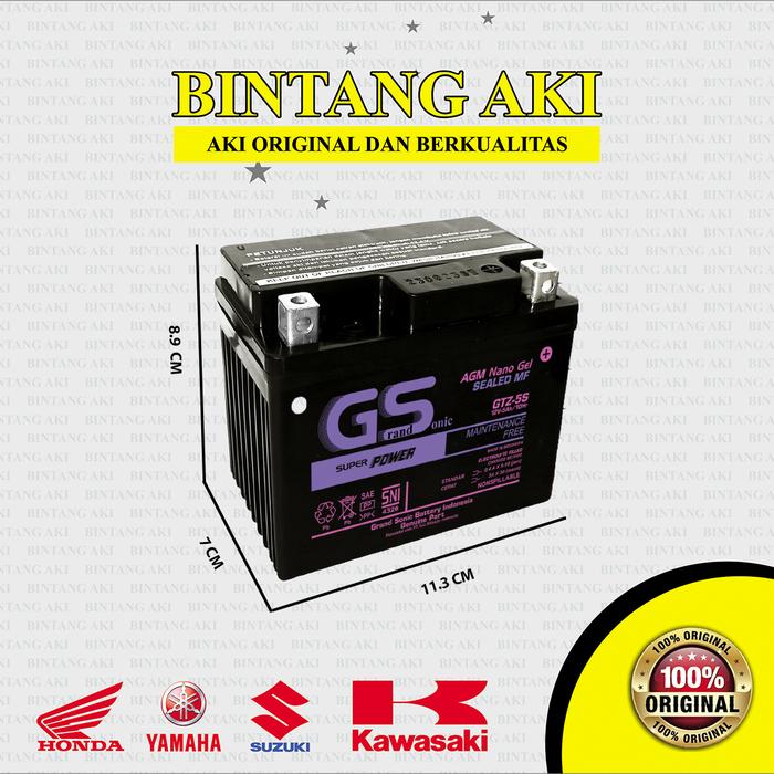 - GTZ5S: Kode model aki yang menunjukkan kapasitas dan ukuran standar untuk motor tertentu.
