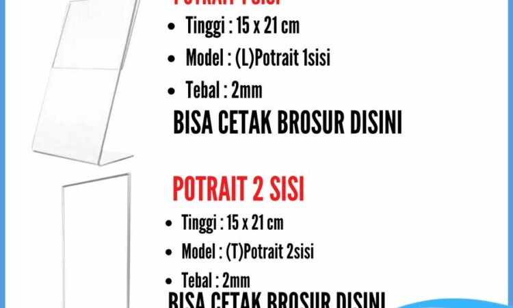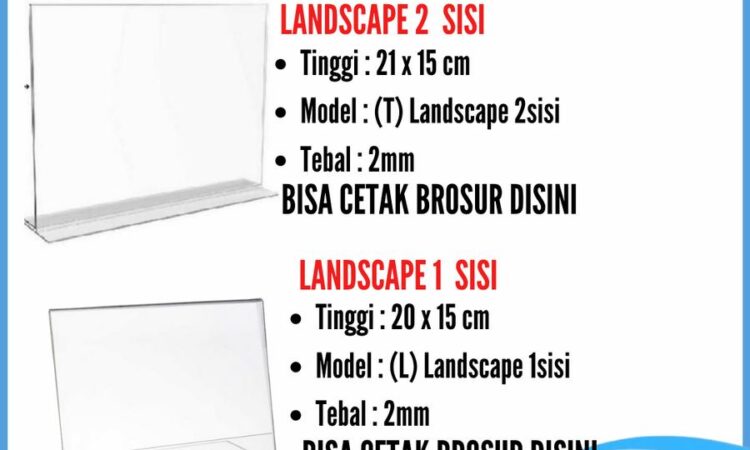 Display brosur berkualitas dengan bahan akrilik premium tebal 2mm. Cocok untuk menyajikan brosur, menu, atau informasi penting dengan tampilan elegan dan profesional.