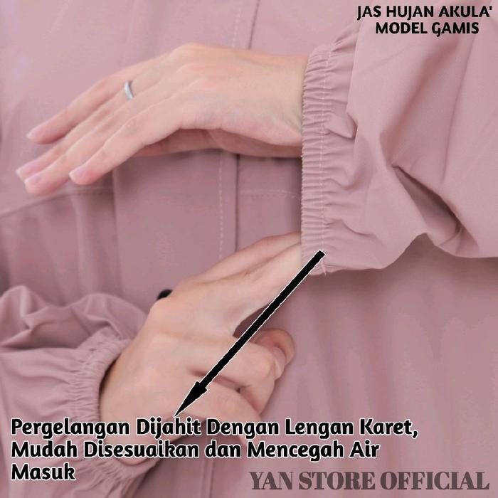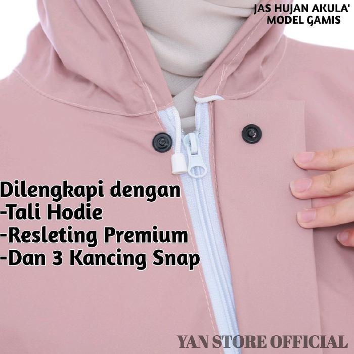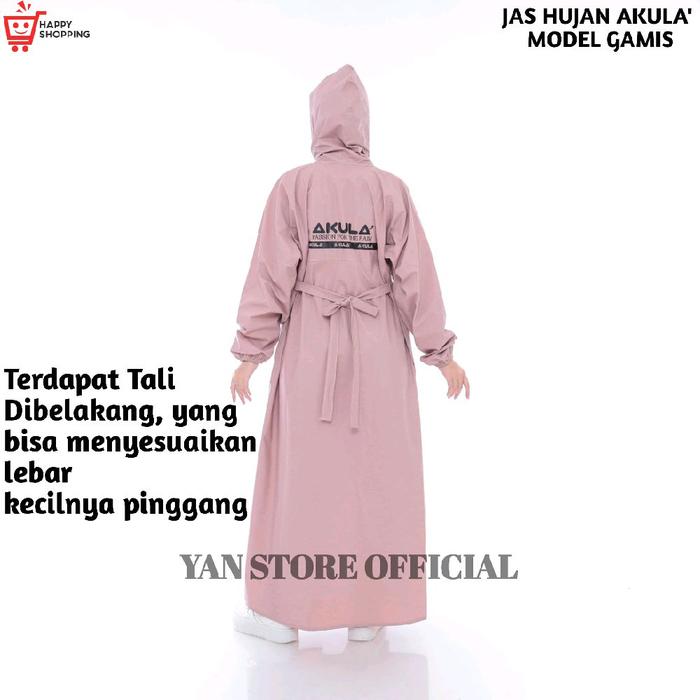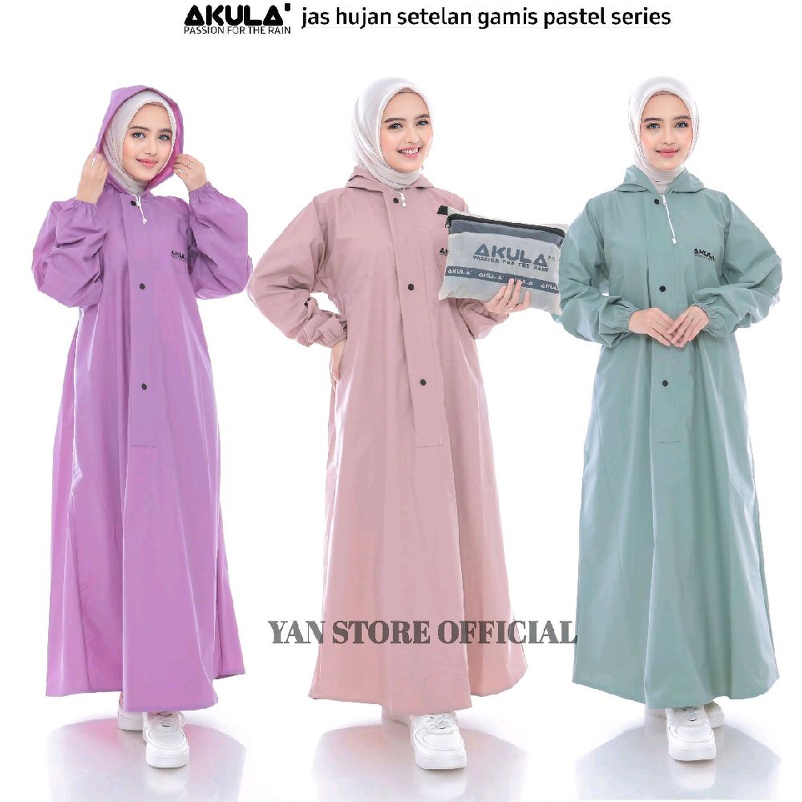 Siap menemani aktivitas Anda di segala cuaca tanpa mengganggu gaya berbusana syar’i. Jas hujan gamis dari AKULA dirancang khusus untuk wanita muslimah dewasa dengan desain yang menutupi seluruh tubuh, elegan, dan sangat nyaman.