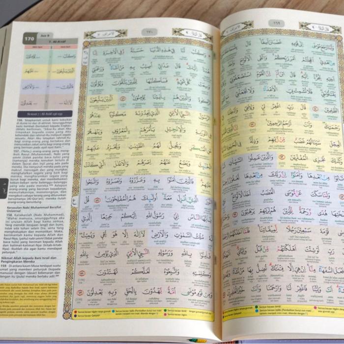 - Non-Tajwid: Jenis mushaf Al-Quran yang ditulis tanpa dilengkapi dengan panduan ilmu tajwid (seperti warna atau simbol tertentu yang menandakan hukum bacaan). Cocok untuk pembaca yang sudah memahami kaidah tajwid atau untuk membaca teks murni.