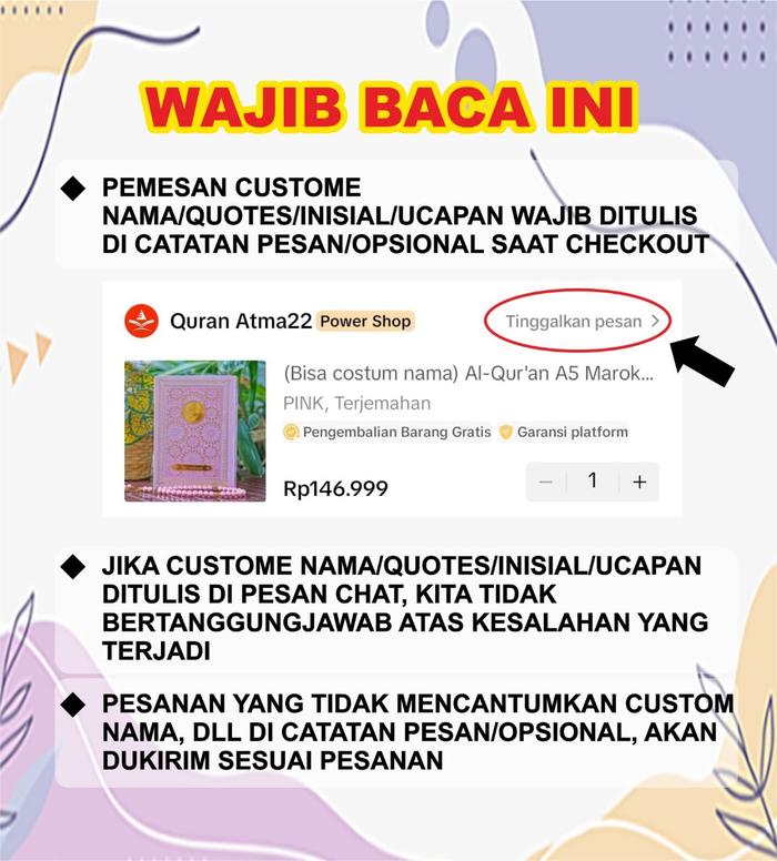 Dicetak oleh penerbit terpercaya, PT ATMA RAYA GRAFIKA, dengan kualitas cetak tajam di atas kertas premium. Segera pesan sekarang juga sebelum kehabisan dan wujudkan Al-Quran spesial dengan nama Anda atau orang tercinta!